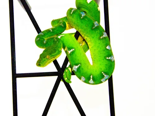 - These beautiful Jayapura Green Tree Pythons are known for dangling their tail to to attract their prey. They are an arboreal species that will need a good amount of branches for perching.